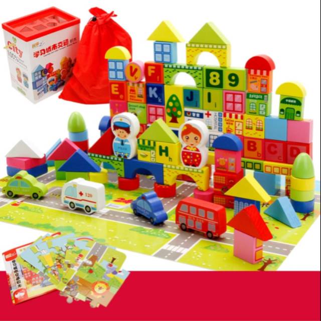 Muwanzi Wooden Building Block 100 Pcs Mainan Balok Kayu Kota City Building Blocks Shopee Indonesia Building Construction Time Lapse